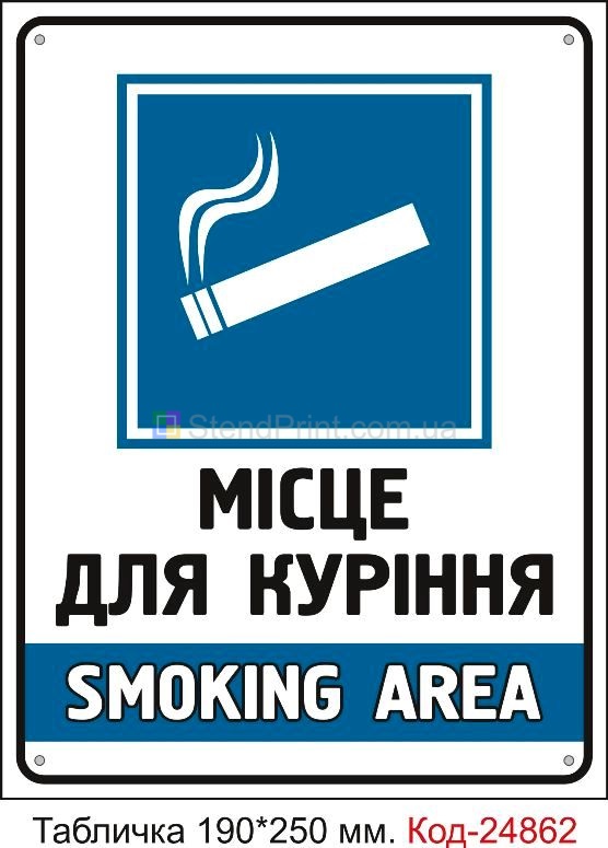 |  | Пластикова табличка "Місце для куріння" Код-24862 |