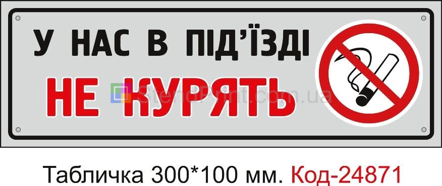 |  | Пластикова табличка "Куріння заборонено у під'їзді" Код-24871 |