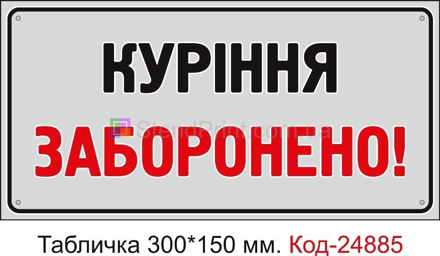 |  | Пластикова табличка "Куріння заборонено" Код-24885 |