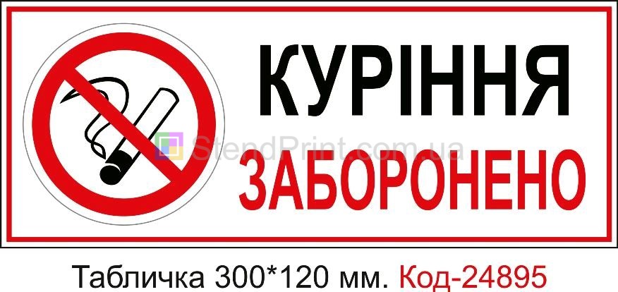 |  | Пластикова табличка "Куріння заборонено" Код-24895 |