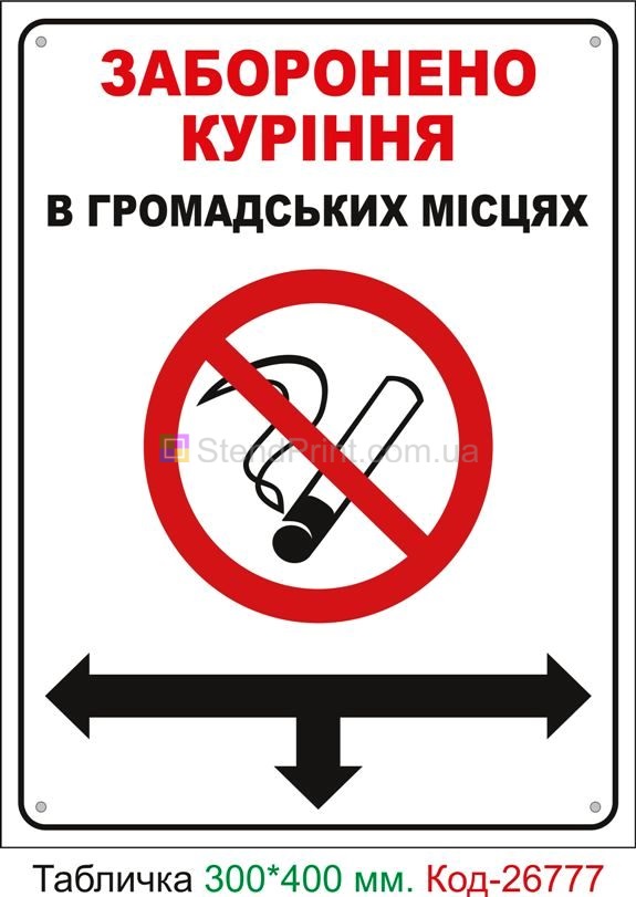 |  | Пластикова табличка "Куріння в громадських місцях заборонено" Код-26777 |