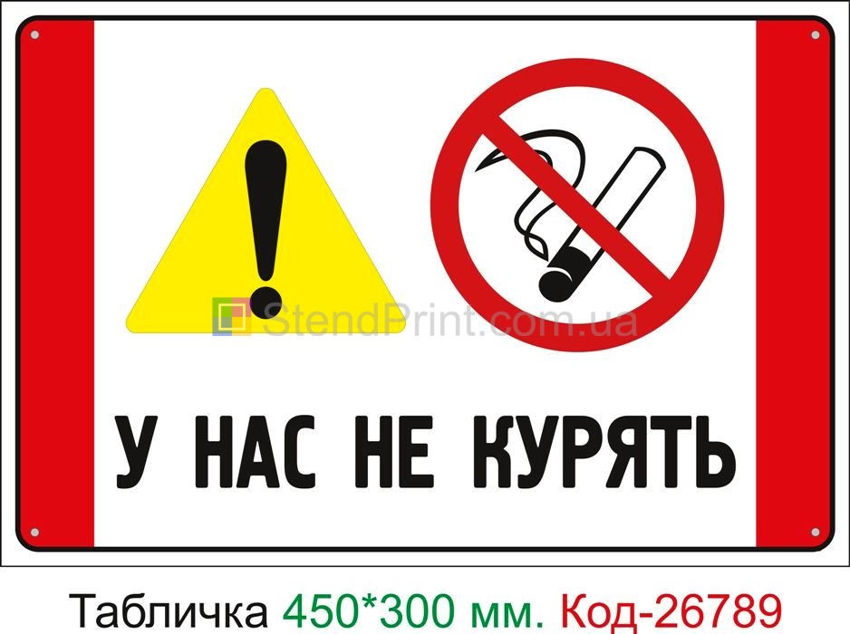 |  | Пластикова табличка "Куріння заборонено, у нас не курять" Код-26789 |