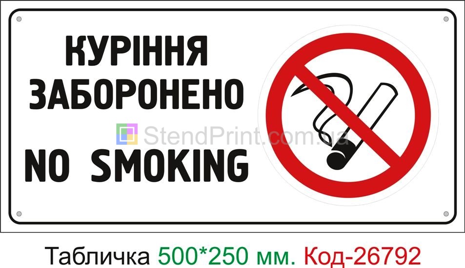 |  | Пластикова табличка "Куріння заборонено" Код-26792 |