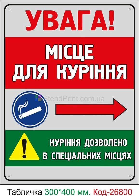 |  | Пластикова табличка "Місце для куріння там" Код-26800 |